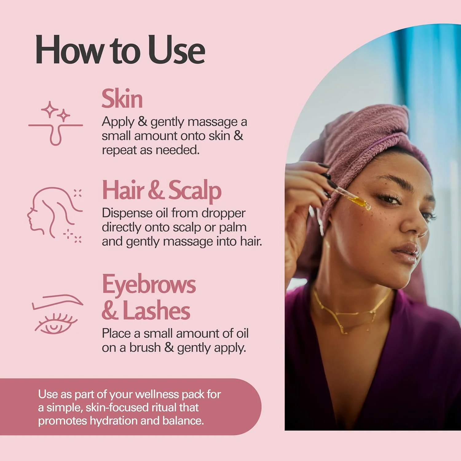 Aplicá unas gotas sobre el cuero cabelludo y masajeá suavemente.